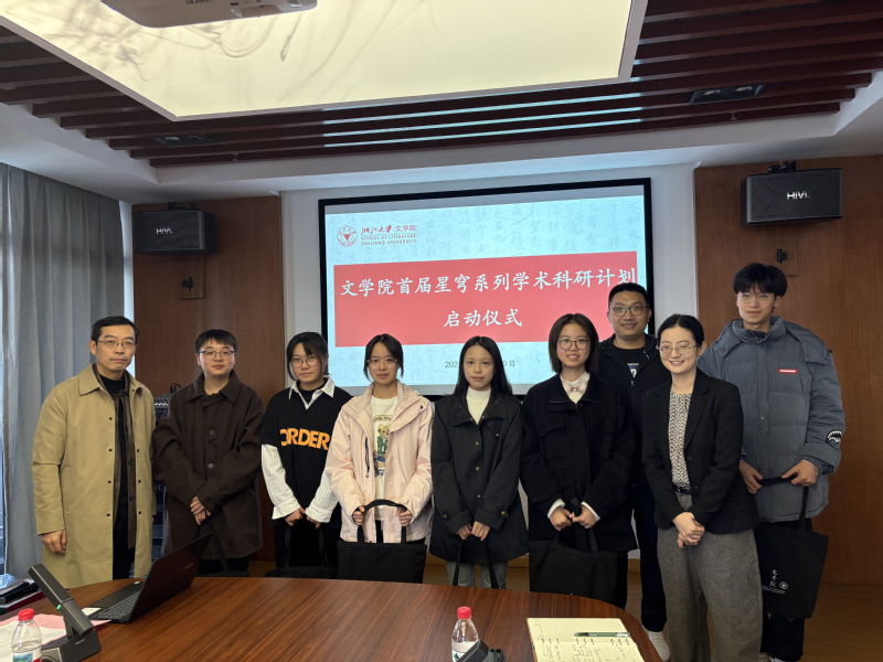 2025年12月19日中午,浙江大学文学院首届“星穹系列学术科研计划”启动仪式在成均苑4幢319会议室隆重举行。文学院院长冯国栋、党委书记李铭霞、副院长史文磊出席仪式,15位“星穹计划”导师代表与二十余位首届“星穹·启明”“星穹·致远”计划学生共同参加。启动仪式由史文磊副院长主持。