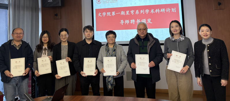 仪式上,院长冯国栋老师和党委书记李铭霞老师为第一期“星穹计划”校内导师颁发了聘书。导师团队由文学院骨干教师组成,涵盖中国古典文献学、语言学与应用语言学、中国古代文学等多个方向。参与“致远计划”的学生还将与来自新加坡国立大学、香港大学等国际知名高校的青年学者们展开协作,形成“校内+海外”双导师指导机制,全程助力项目开展。